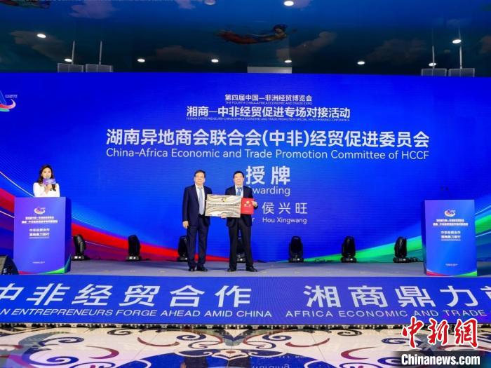 湖南异地商会联合会(中非)经贸促进委员会授牌。 付敬懿摄