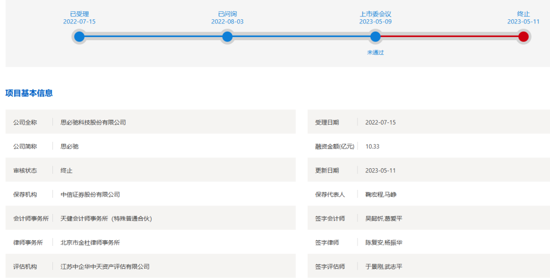 上交所官网披露资本E家,2022年7月15日,思必驰申报科创板IPO获上交所受理。2023年5月9日,上交所官网显示,上市审核委员会召开2023年第34次审议会议,根据审议结果,思必驰(首发)未通过。