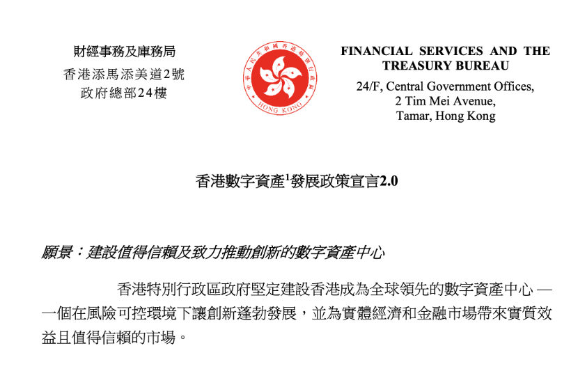 6月26日快牛策略,香港特区政府发表《香港数字资产发展政策宣言2.0》(下称《政策宣言2.0》),重申政府致力将香港打造成数字资产领域中的全球创新中心。